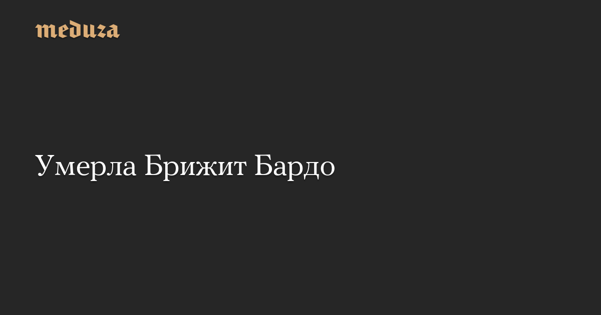 Французская актриса, певица и модель Брижит Бардо умерла в возрасте 91 года, сообщают Le Figaro и AFP.