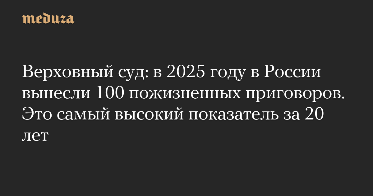 Верховный суд: в 2025 году в России вынесли 100 пожизненных приговоров. Это самый высокий показатель за 20 лет