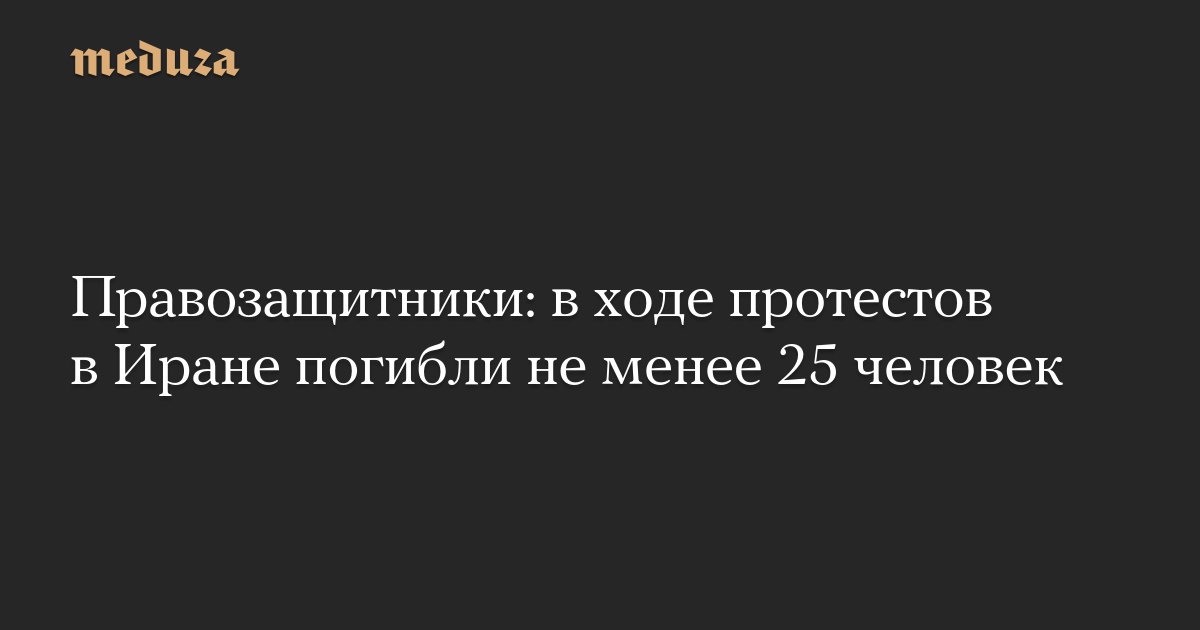 По меньшей мере 25 человек погибли в Иране с начала массовых протестов. Об этом пишет Reuters со ссылкой на данные правозащитников.