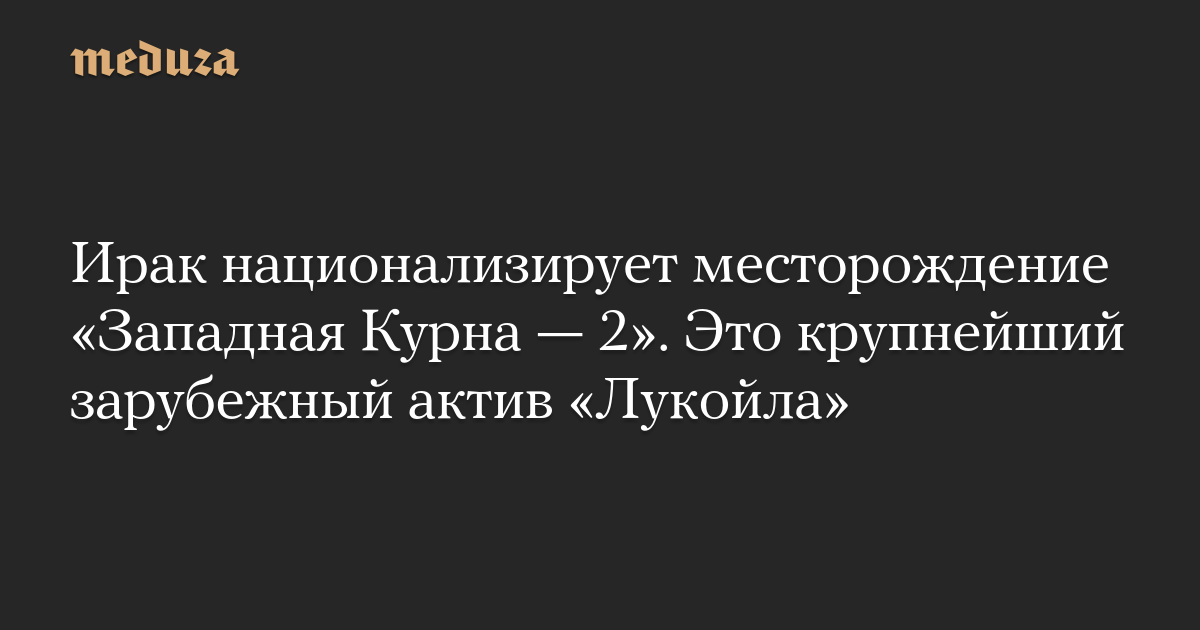 Ирак национализирует месторождение «Западная Курна — 2». Это крупнейший зарубежный актив «Лукойла»