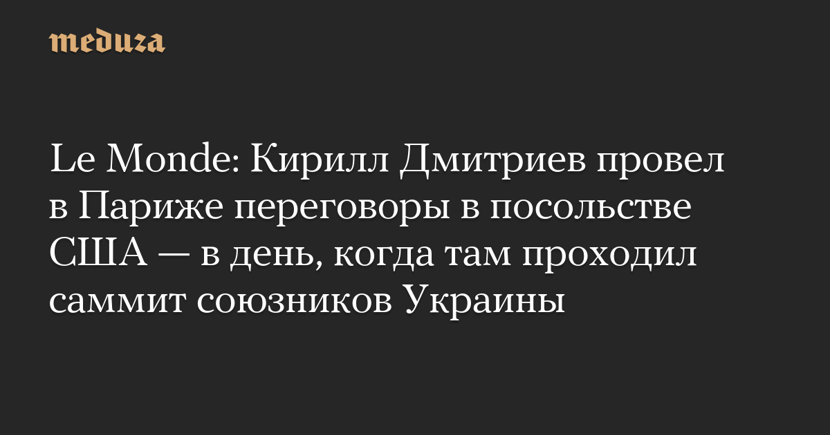 Le Monde: Кирилл Дмитриев провел в Париже переговоры в посольстве США — в день, когда там проходил саммит союзников Украины