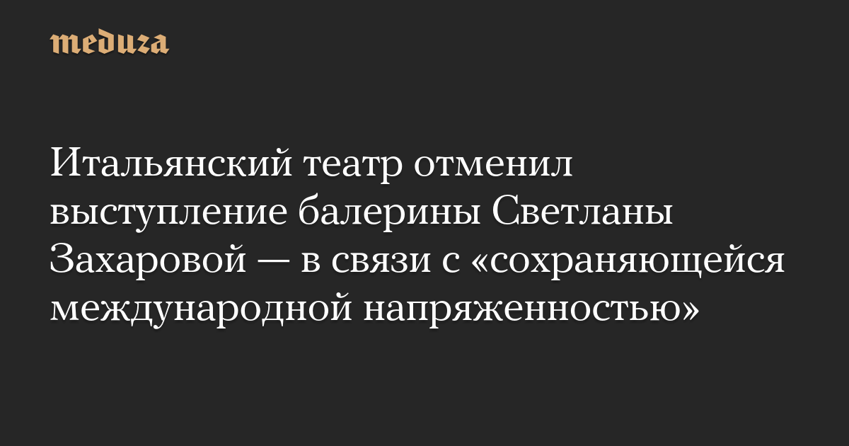 Итальянский театр отменил выступление балерины Светланы Захаровой — в связи с «сохраняющейся международной напряженностью»
