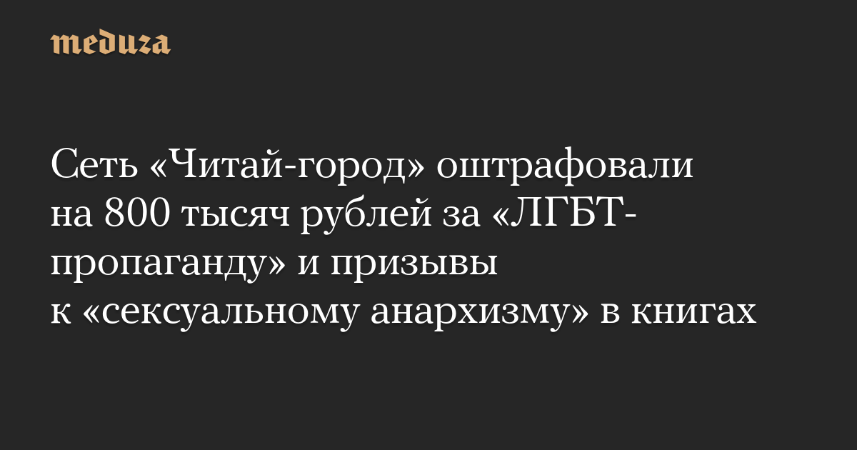 Сеть «Читай-город» оштрафовали на 800 тысяч рублей за «ЛГБТ-пропаганду» и призывы к «сексуальному анархизму» в книгах