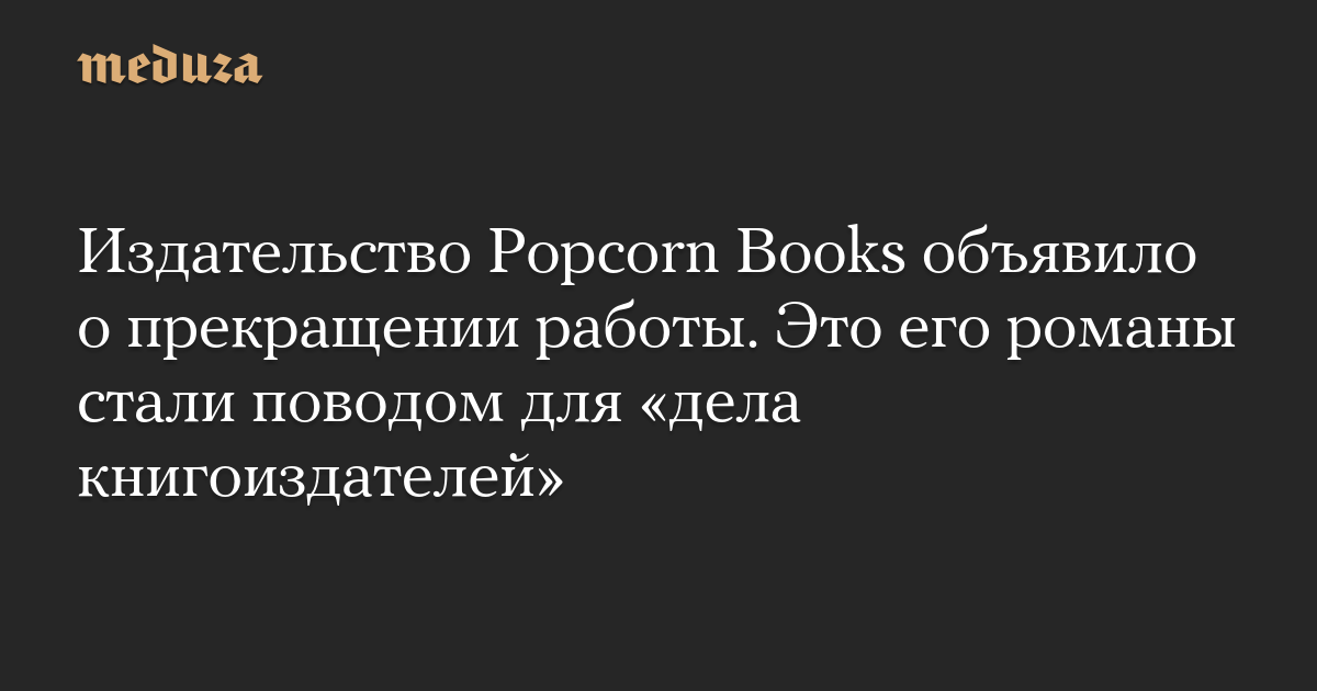 Издательство Popcorn Books объявило о прекращении работы. Это его романы стали поводом для «дела книгоиздателей»