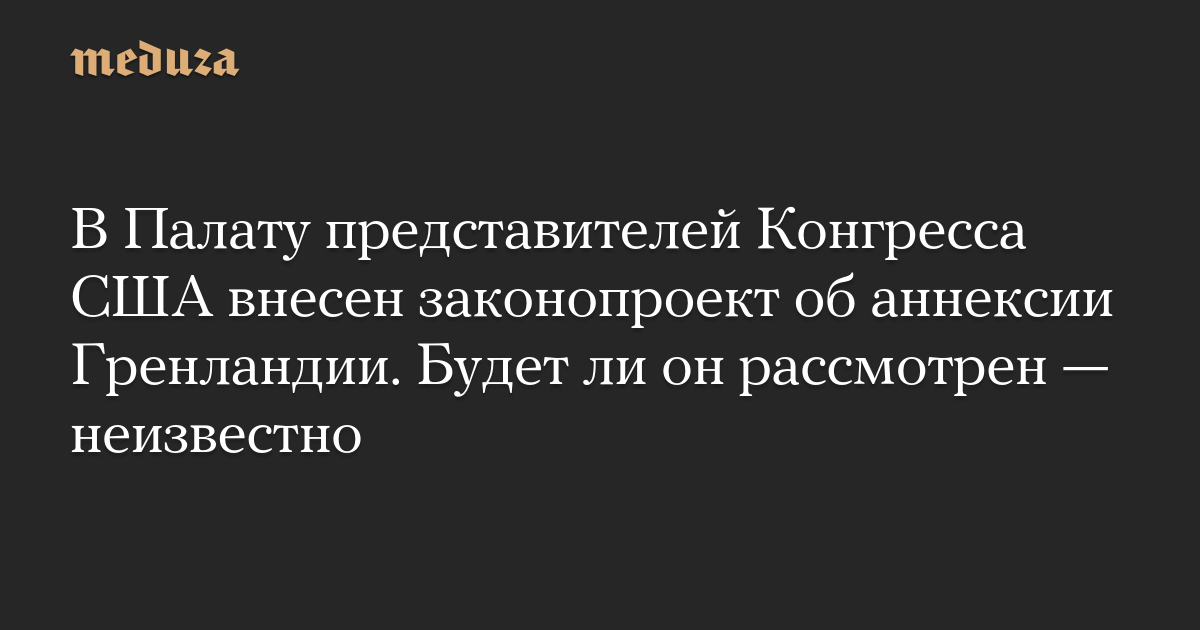 В Палату представителей Конгресса США внесен законопроект об аннексии Гренландии. Будет ли он рассмотрен — неизвестно