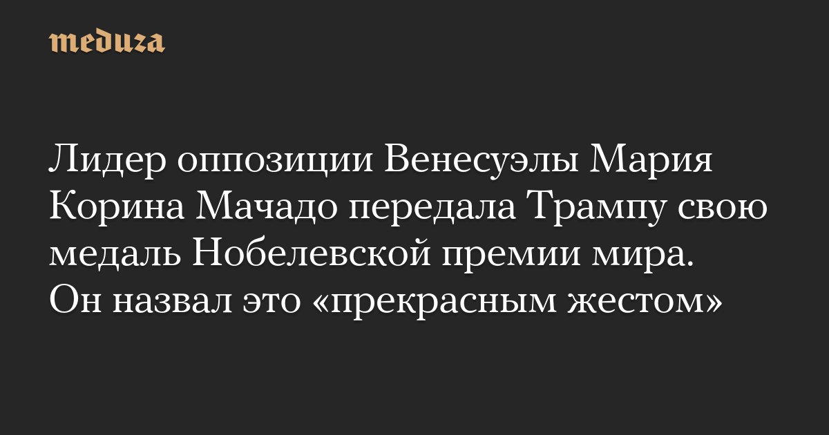 Лидер оппозиции Венесуэлы Мария Корина Мачадо передала Трампу свою медаль Нобелевской премии мира. Он назвал это «прекрасным жестом»