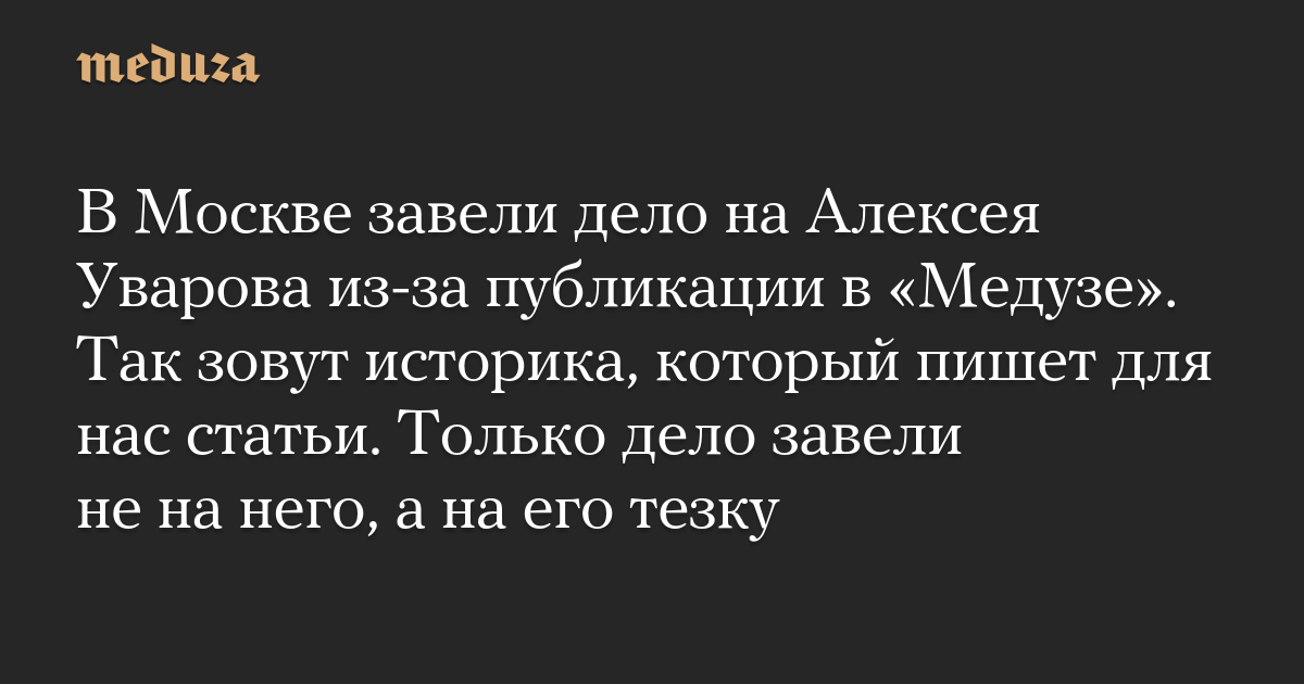В Москве завели дело на Алексея Уварова из-за публикации в «Медузе». Так зовут историка, который пишет для нас статьи. Только дело завели не на него, а на его тезку
