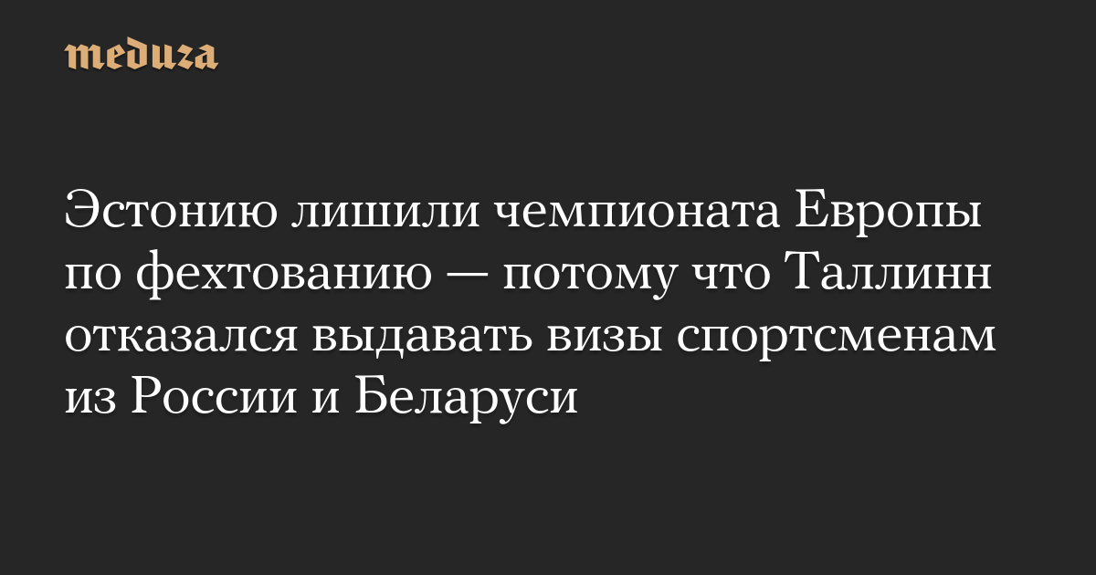 Эстонию лишили чемпионата Европы по фехтованию — потому что Таллинн отказался выдавать визы спортсменам из России и Беларуси