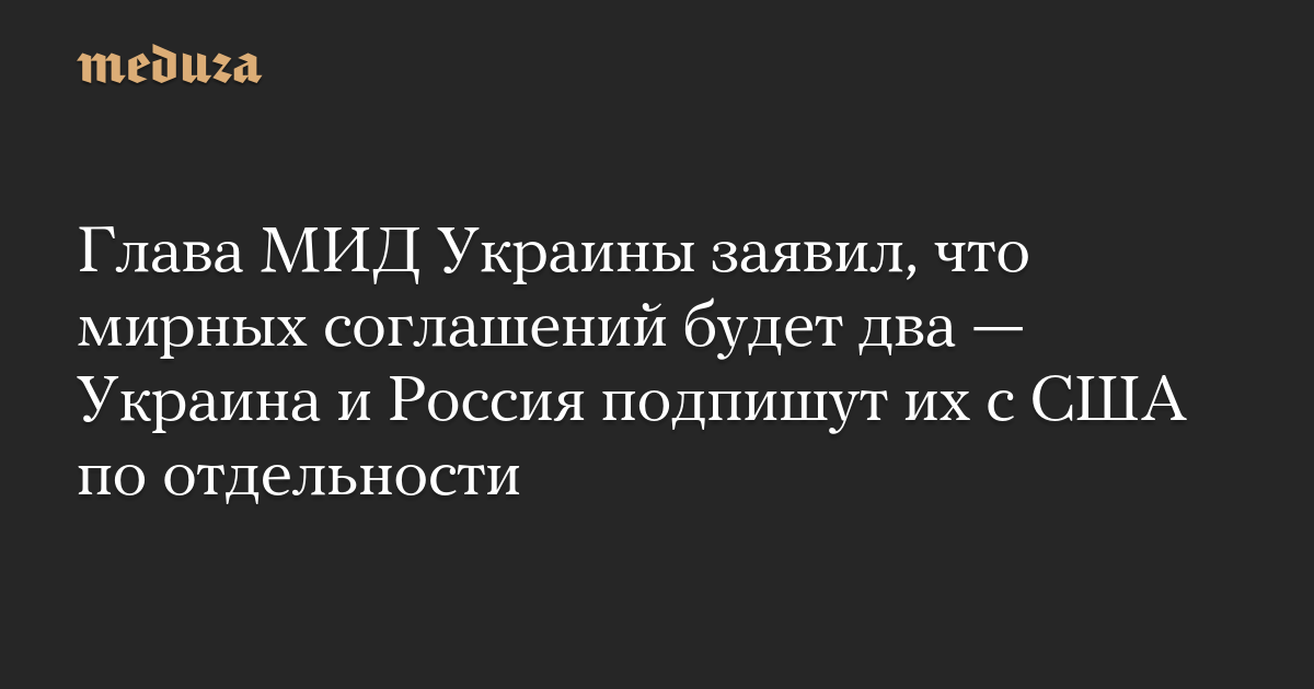 Глава МИД Украины заявил, что мирных соглашений будет два — Украина и Россия подпишут их с США по отдельности