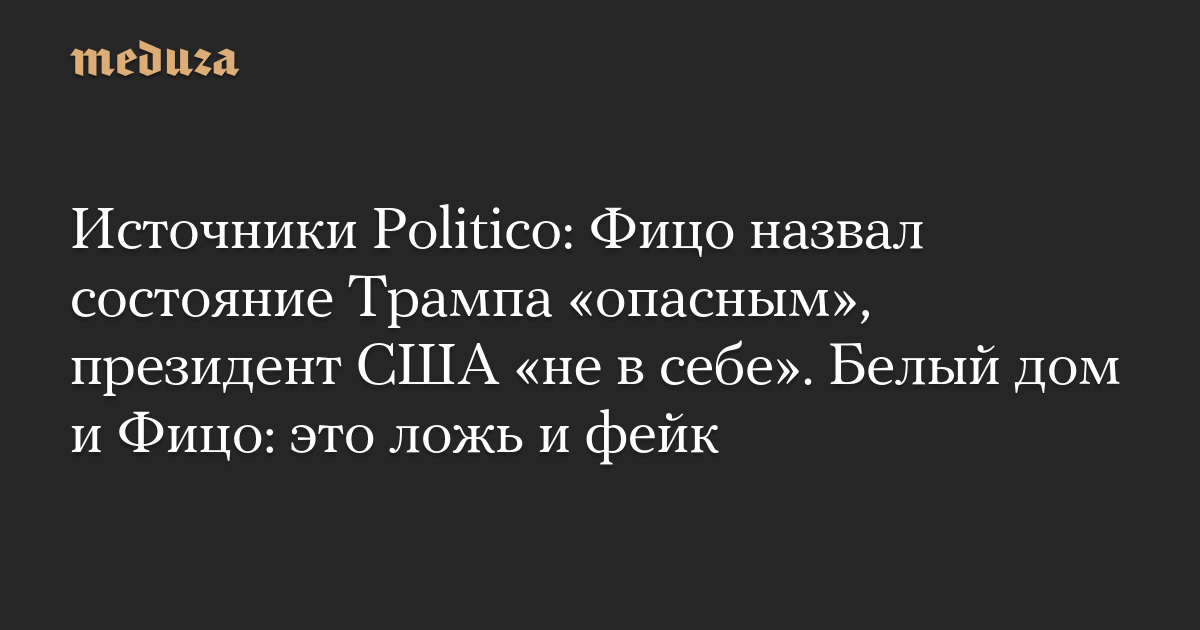 Источники Politico: Фицо назвал состояние Трампа «опасным», президент США «не в себе». Белый дом и Фицо: это ложь и фейк