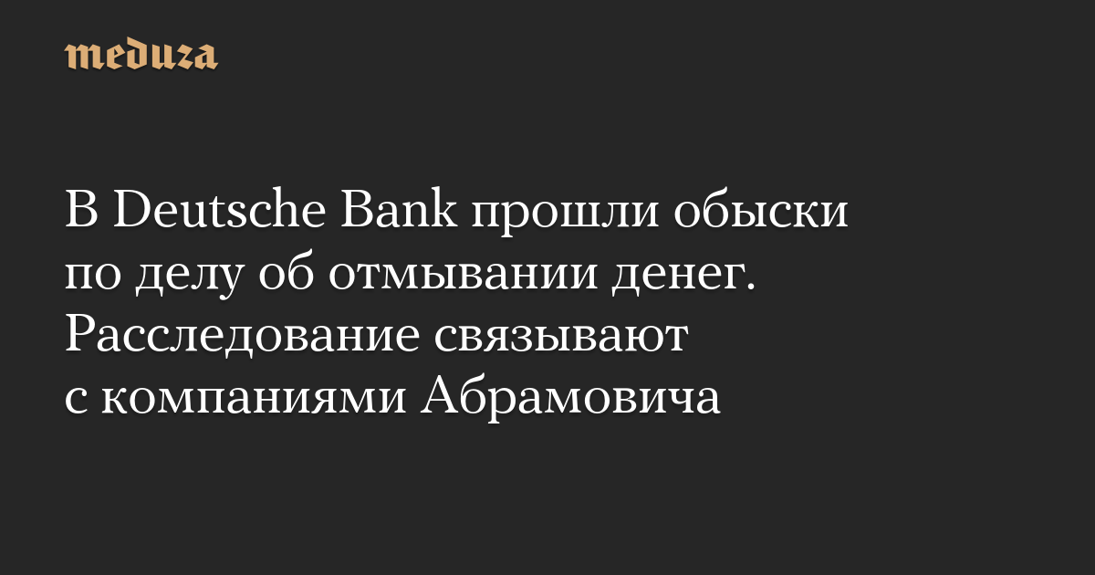 В Deutsche Bank прошли обыски по делу об отмывании денег. Расследование связывают с компаниями Абрамовича