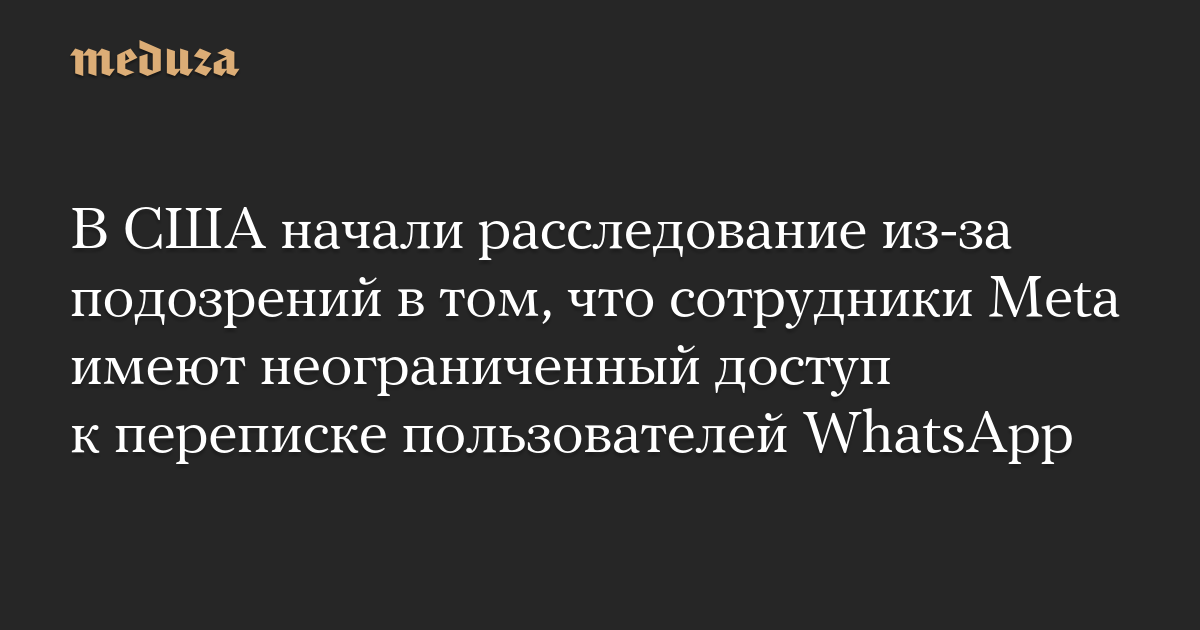 Власти США открыли расследование из-за заявлений бывших подрядчиков Meta Platforms о том, что у сотрудников компании есть неограниченный доступ к сообщениям пользователей мессенджера WhatsApp, сообщает Bloomberg.