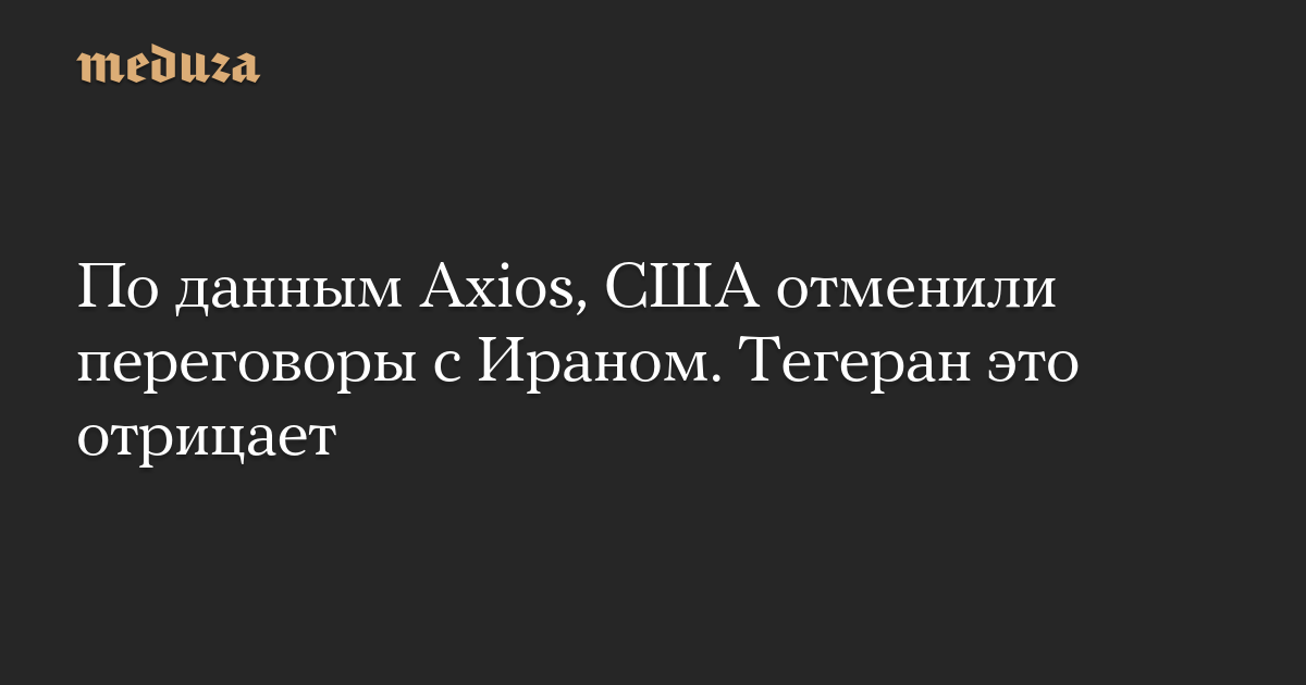 По данным Axios, США отменили переговоры с Ираном. Тегеран это отрицает