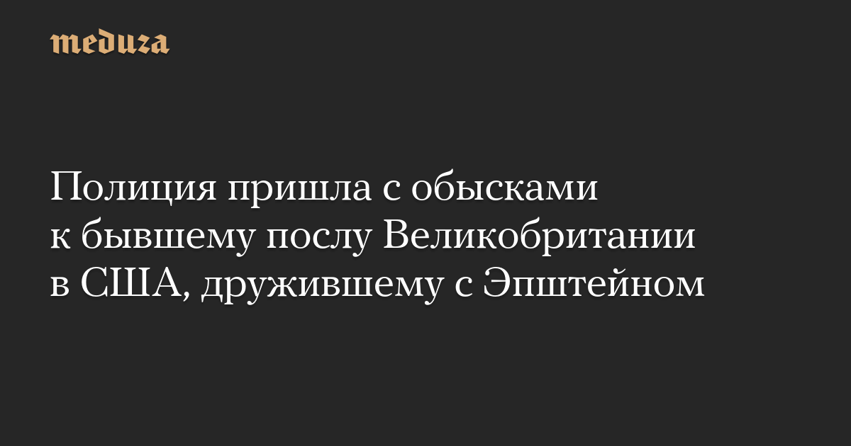 Полиция пришла с обысками к бывшему послу Великобритании в США, дружившему с Эпштейном