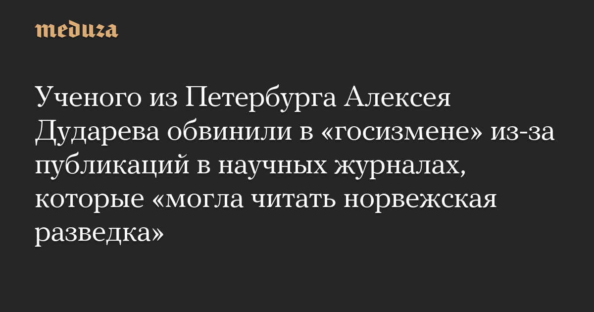 Ученого из Петербурга Алексея Дударева обвинили в «госизмене» из-за публикаций в научных журналах, которые «могла читать норвежская разведка»