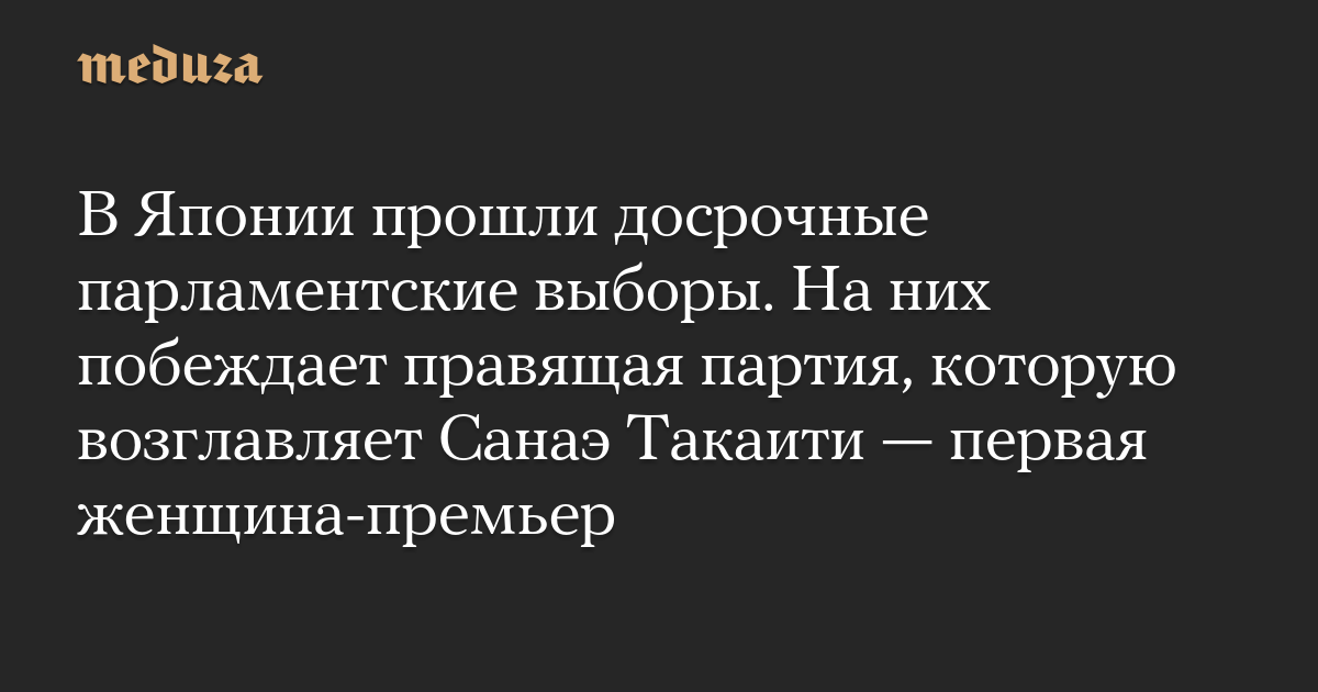 Обновление. Либерально-демократическая партия Такаити одерживает победу на досрочных парламентских выборах. По прогнозу Kyodo News, Либерально-демократическая партия (ЛДП), которую возглавляет премьер Санаэ Такаити, получает как минимум 243 места в парламенте (для получения большинства необходимо 233 места). С учетом входящей в коалцию с ЛДП «Партией обновления Японии», они получат больше 300 мест в нижней палате парламента. Главная оппозиционная сила, Центристский реформаторский альянс (в него входят бывший партнер ЛДП по правящей коалиции партия «Комэйто» и Конституционно-демократическая партия), потеряет значительное количество мест в парламенте.