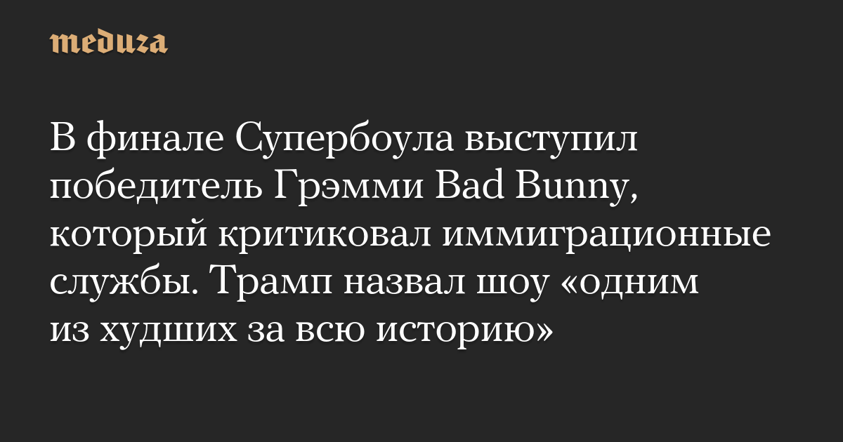 В финале Супербоула выступил победитель Грэмми Bad Bunny, который критиковал иммиграционные службы. Трамп назвал шоу «одним из худших за всю историю»
