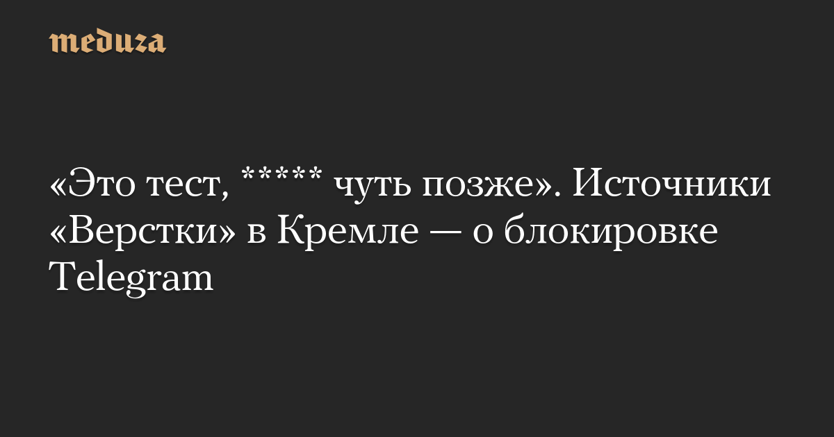 «Это тест, ***** чуть позже». Источники «Верстки» в Кремле — о блокировке Telegram
