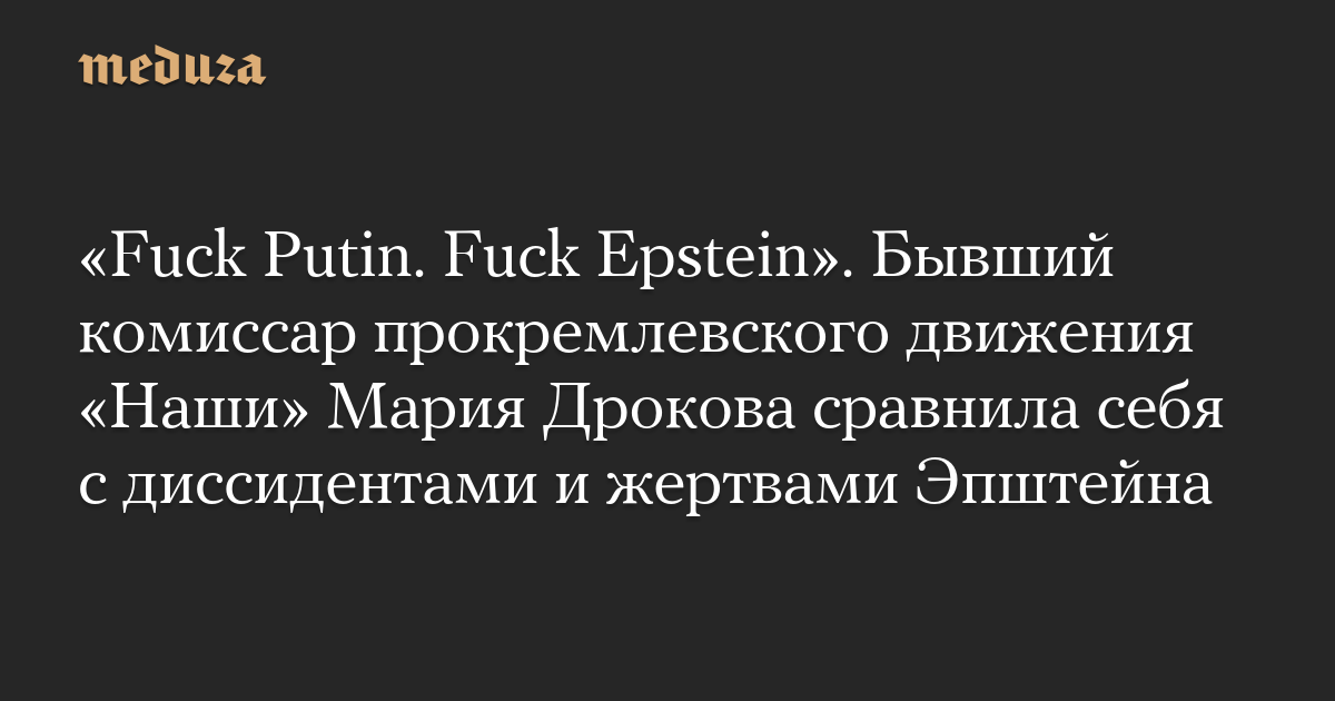 «Fuck Putin. Fuck Epstein». Бывший комиссар прокремлевского движения «Наши» Мария Дрокова сравнила себя с диссидентами и жертвами Эпштейна
