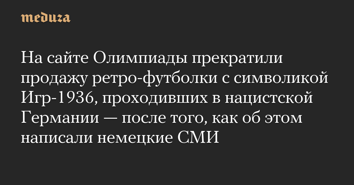 Онлайн-магазин Олимпийских игр снял с продажи футболки с символикой Олимпиады-1936, проходившей в нацистской Германии, после того как на них обратили внимание немецкие СМИ.