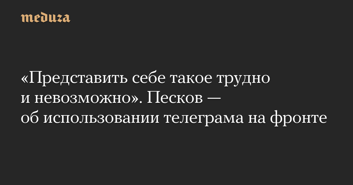 «Представить себе такое трудно и невозможно». Песков — об использовании телеграма на фронте