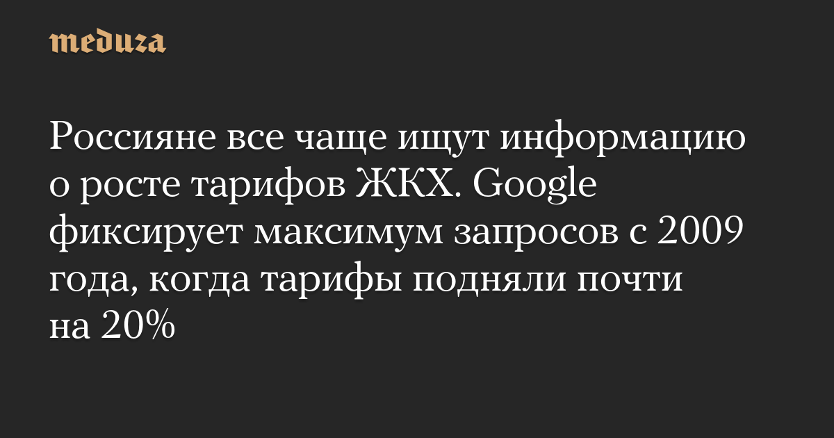 Россияне все чаще ищут информацию о росте тарифов ЖКХ. Google фиксирует максимум запросов с 2009 года, когда тарифы подняли почти на 20%