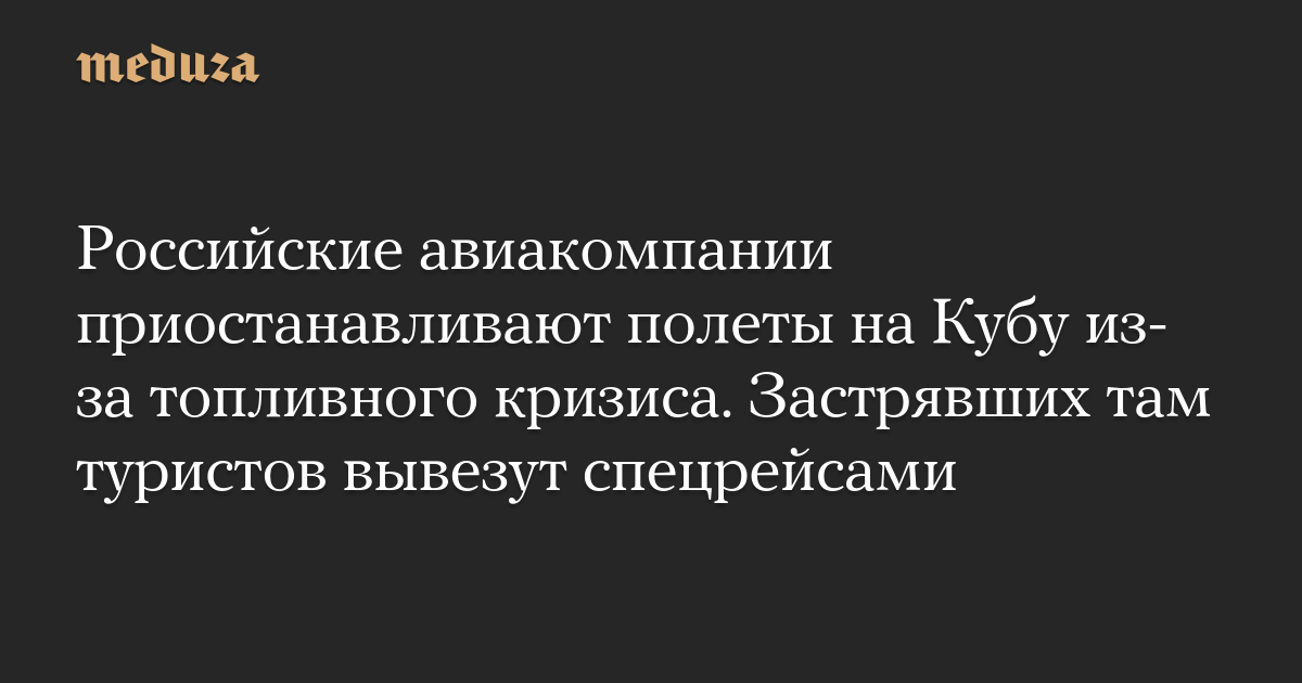 Российские авиакомпании приостанавливают полеты на Кубу из-за топливного кризиса. Застрявших там туристов вывезут спецрейсами