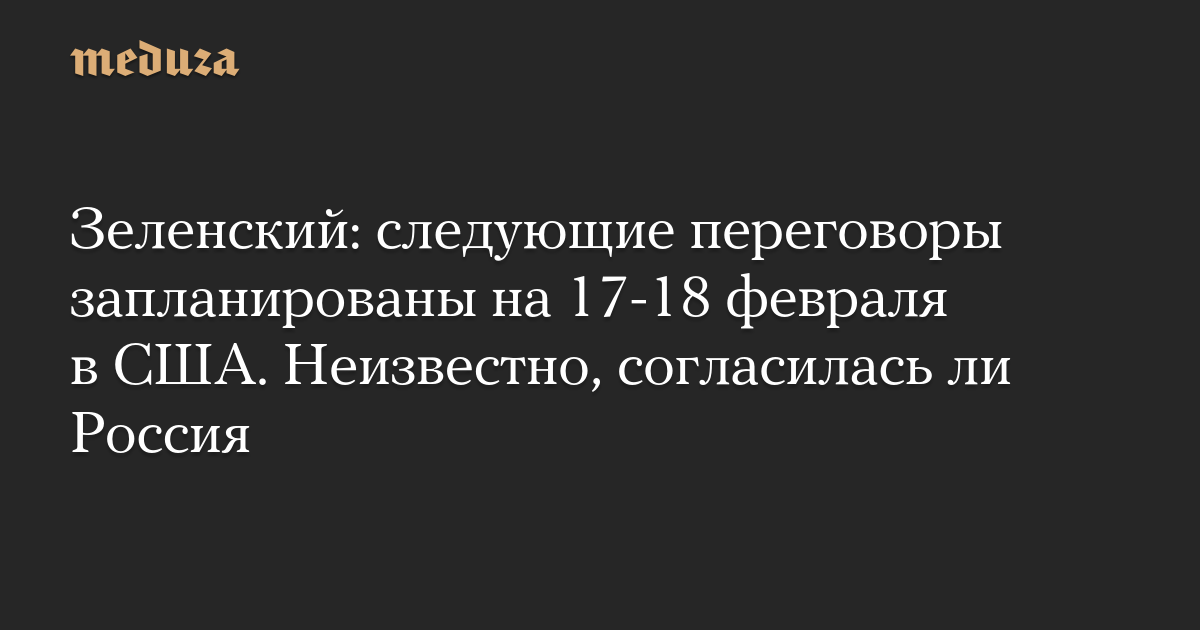 Зеленский: следующие переговоры запланированы на 17-18 февраля в США. Неизвестно, согласилась ли Россия