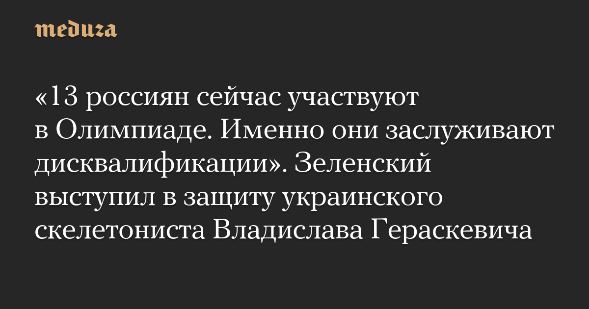 «13 россиян сейчас участвуют в Олимпиаде. Именно они заслуживают дисквалификации». Зеленский выступил в защиту украинского скелетониста Владислава Гераскевича