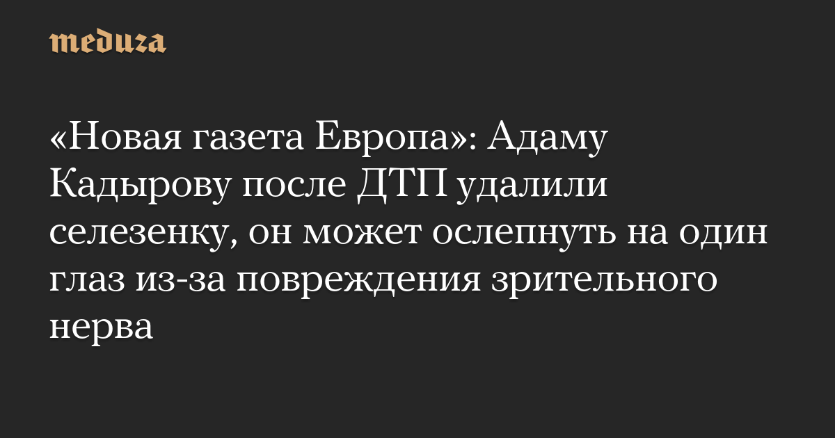 «Новая газета Европа»: Адаму Кадырову после ДТП удалили селезенку, он может ослепнуть на один глаз из-за повреждения зрительного нерва