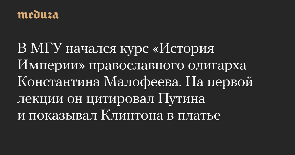В МГУ начался курс «История Империи» православного олигарха Константина Малофеева. На первой лекции он цитировал Путина и показывал Клинтона в платье