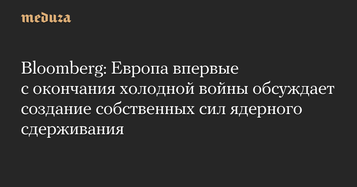 Европейские страны впервые со времен окончания холодной войны обсуждают создание собственной ядерной системы обороны, так как США больше не являются надежным военным партнером, пишет Bloomberg со ссылкой на источники.