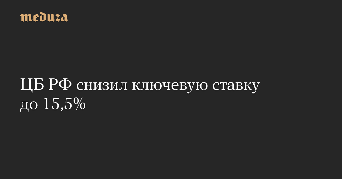 ЦБ РФ снизил ключевую ставку до 15,5%