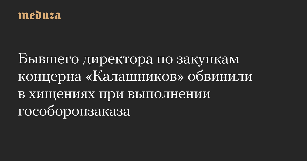 Бывшего директора по закупкам концерна «Калашников» обвинили в хищениях при выполнении гособоронзаказа
