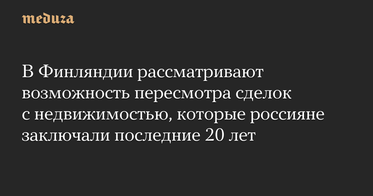 В Финляндии рассматривают возможность пересмотра сделок с недвижимостью, которые россияне заключали последние 20 лет
