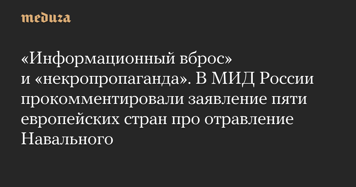 «Информационный вброс» и «некропропаганда». В МИД России прокомментировали заявление пяти европейских стран про отравление Навального