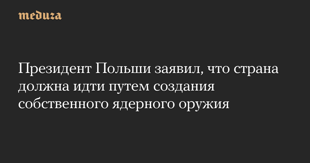 Президент Польши заявил, что страна должна идти путем создания собственного ядерного оружия