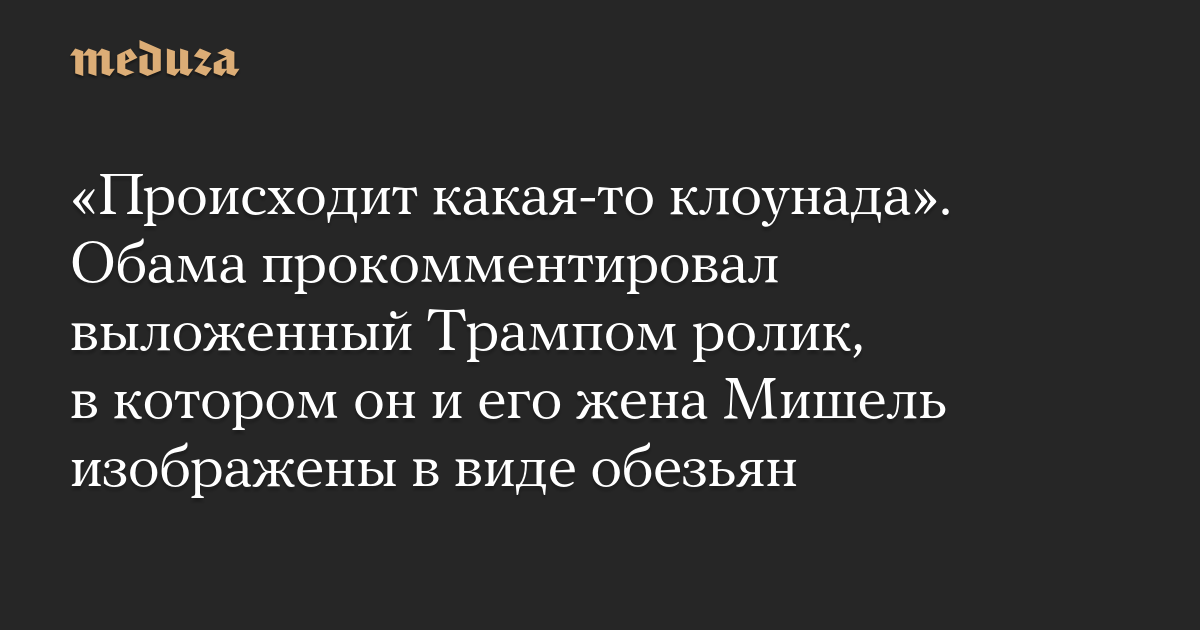 «Происходит какая-то клоунада». Обама прокомментировал выложенный Трампом ролик, в котором он и его жена Мишель изображены в виде обезьян