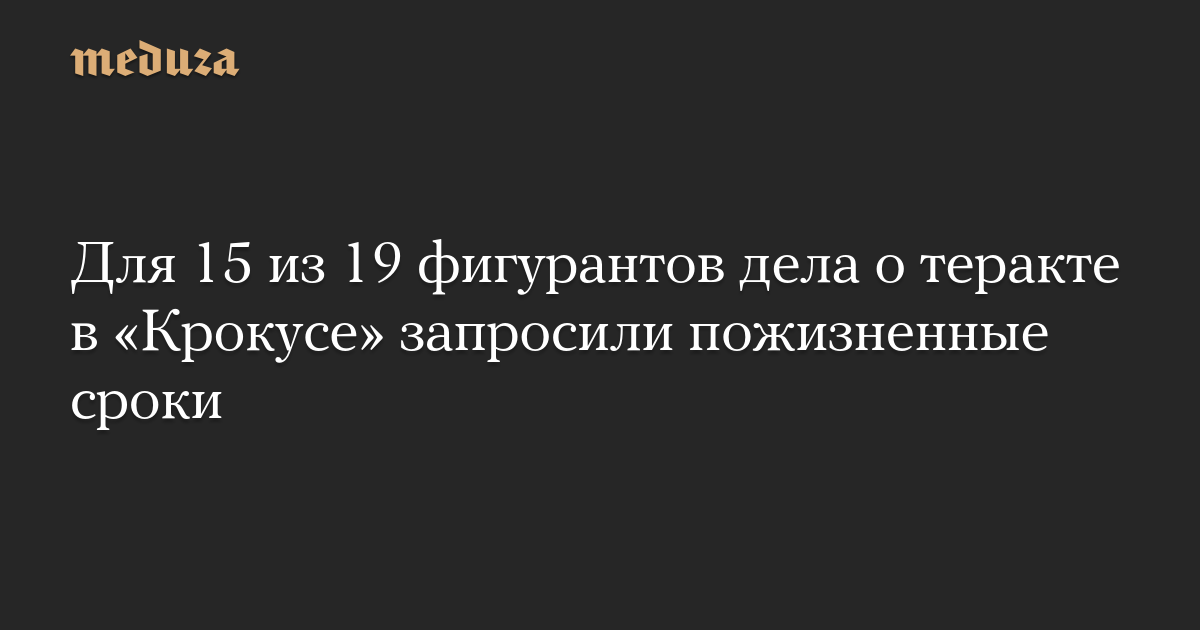 Для 15 из 19 фигурантов дела о теракте в «Крокусе» запросили пожизненные сроки