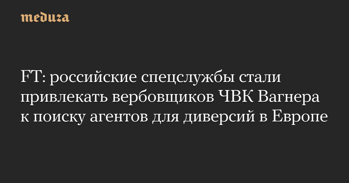 FT отмечает, что после нескольких волн высылки российских дипломатов из европейских стран Москва все чаще обращается к посредникам, и сеть вербовщиков ЧВК Вагнера стала «особенно эффективным, хотя и грубым инструментом». Вербовщики, которые раньше убеждали молодежь из российских регионов отправиться на войну в Украину, получили новую задачу — нанимать «экономически уязвимых» европейцев для исполнения диверсий.