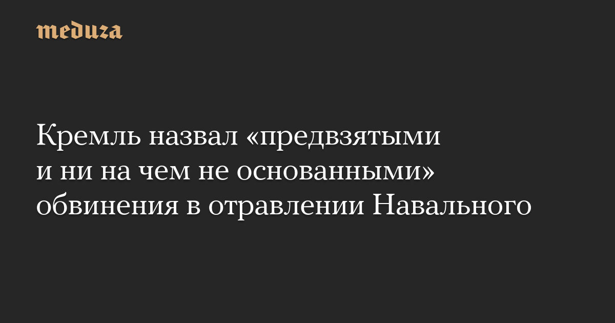 В Кремле назвали «предвзятыми и ни на чем не основанными» обвинения в адрес властей России в отравлении Алексея Навального.