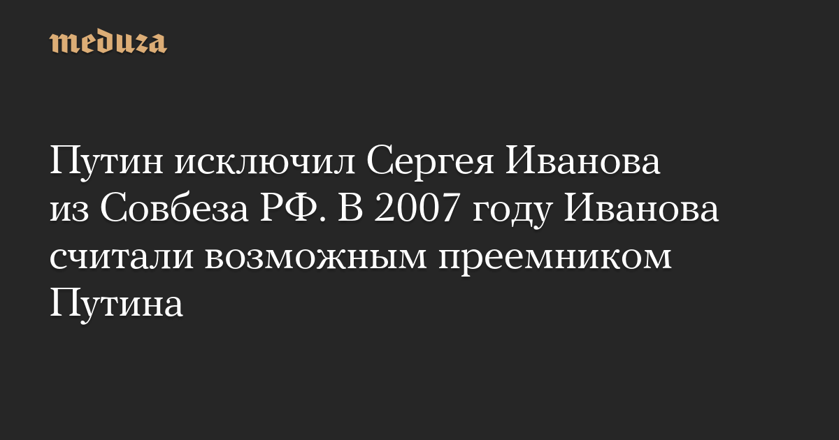 Путин исключил Сергея Иванова из Совбеза РФ. В 2007 году Иванова считали возможным преемником Путина