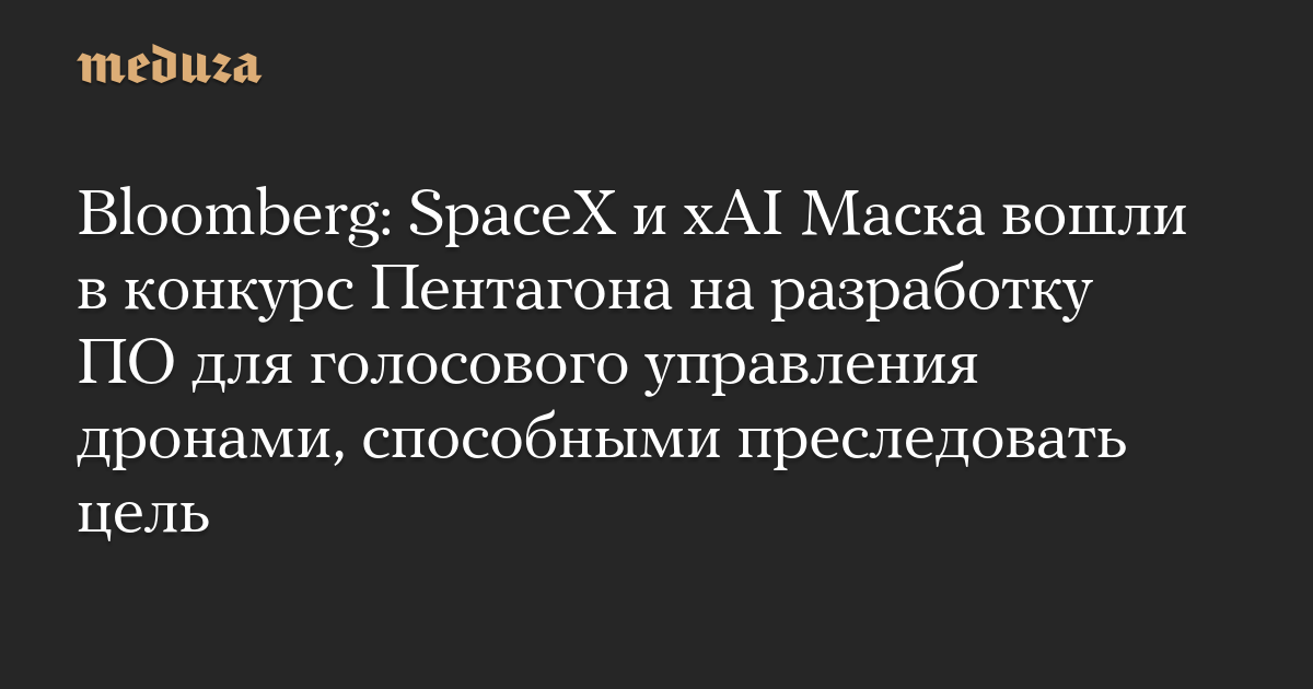 Bloomberg: SpaceX и xAI Маска вошли в конкурс Пентагона на разработку ПО для голосового управления дронами, способными преследовать цель