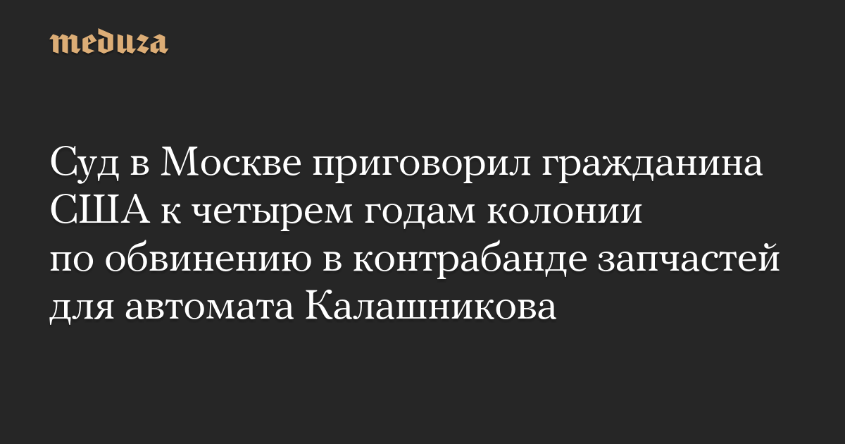 Суд в Москве приговорил гражданина США к четырем годам колонии по обвинению в контрабанде запчастей для автомата Калашникова