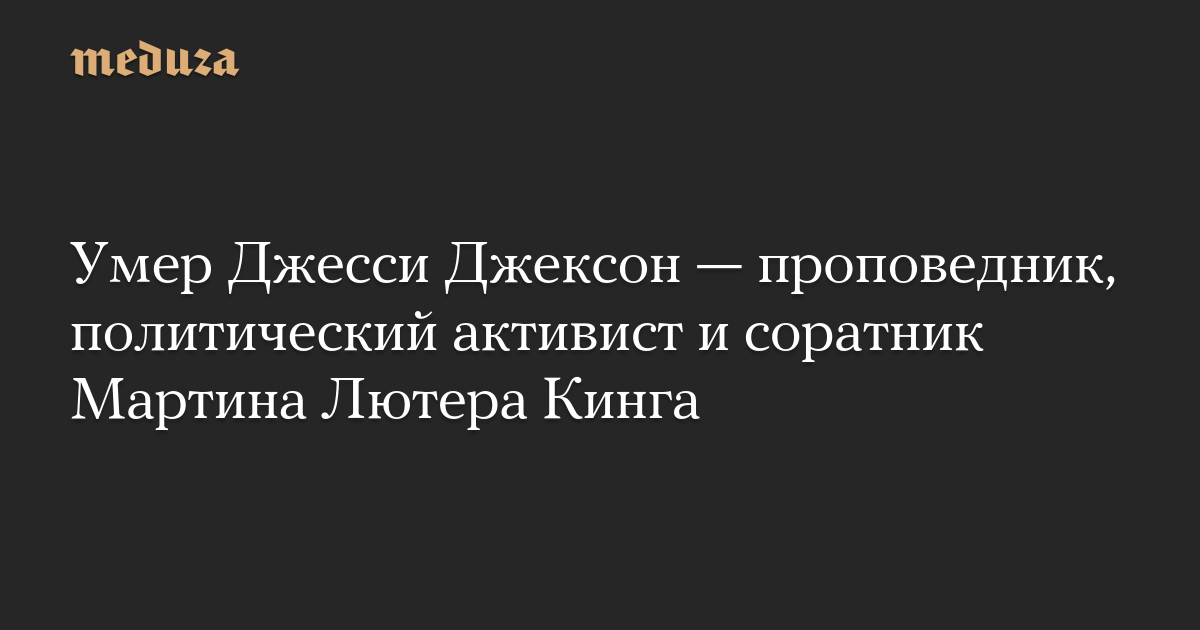 В возрасте 84 лет умер Джесси Джексон — проповедник, политический активист и один из самых влиятельных темнокожих лидеров США во второй половине XX века. Он был соратником Мартина Лютера Кинга и его преемником в качестве фактического лидера движения за гражданские права темнокожих после убийства Кинга в 1968 году.