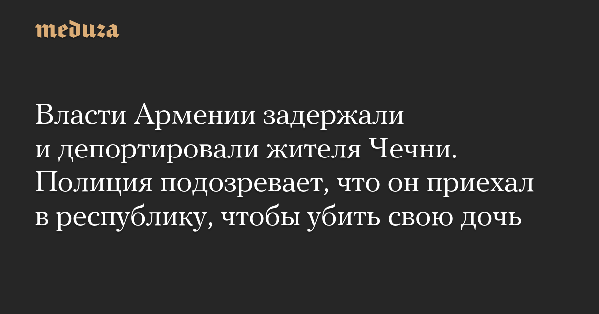 В Армении задержан и выслан из страны 48-летний житель Чечни, который, как подозревает полиция, приехал в республику, чтобы убить свою дочь. По данным руководителя отделения Хельсинкской гражданской ассамблеи в городе Ванадзор Артура Сакунца, россиянину запрещен въезд в Армению в будущем, пишет The Insider со ссылкой на CivilNet.