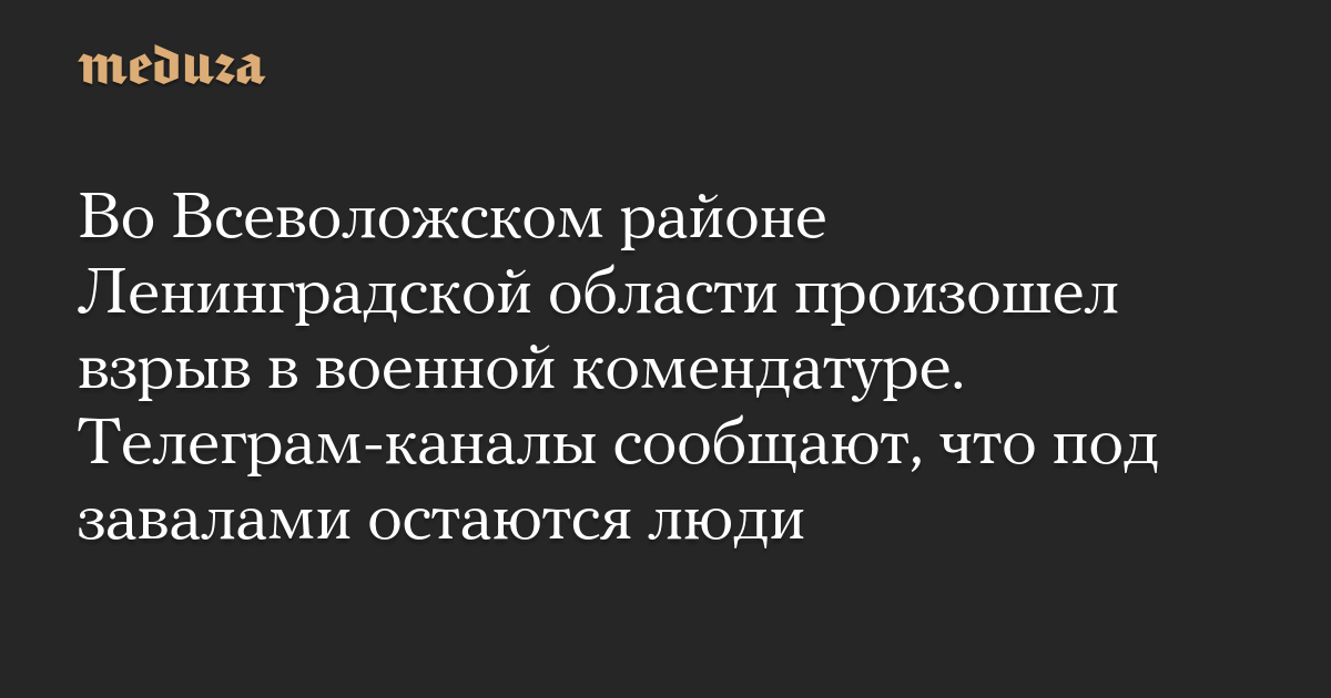 Во Всеволожском районе Ленинградской области произошел взрыв в военной комендатуре. Телеграм-каналы сообщают, что под завалами остаются люди