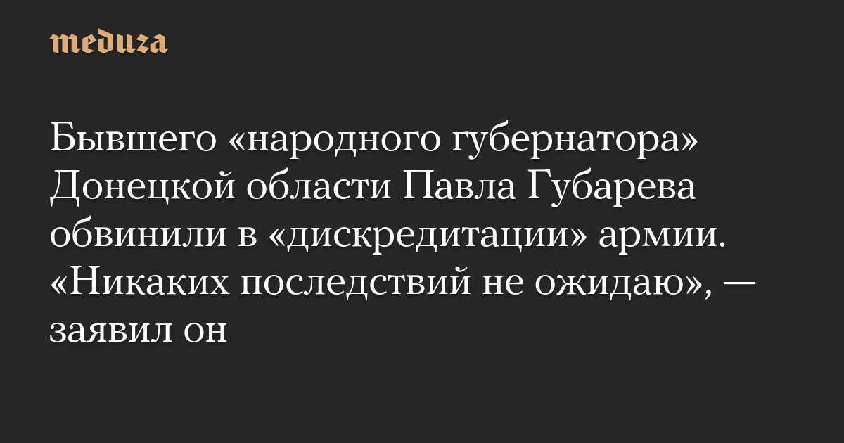 Бывшего «народного губернатора» Донецкой области Павла Губарева обвинили в «дискредитации» армии. «Никаких последствий не ожидаю», — заявил он