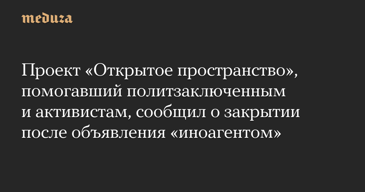 Проект «Открытое пространство», помогавший политзаключенным и активистам, сообщил о закрытии после объявления «иноагентом»