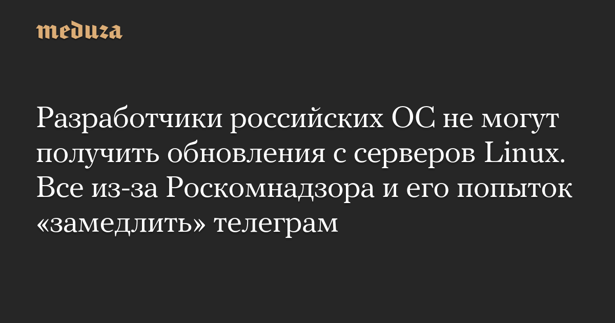Разработчики российских ОС не могут получить обновления с серверов Linux. Все из-за Роскомнадзора и его попыток «замедлить» телеграм